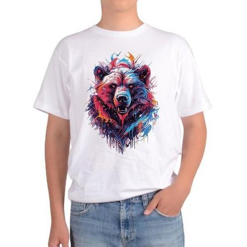 100% 순면 천사 머리 자른 테디베어 반팔 티셔츠 남녀 공용