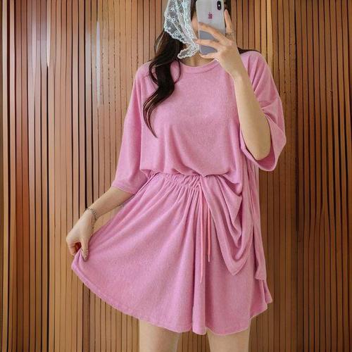 [옷자락]여자 하프팬츠 SS 테리 캐쥬얼 슬리브리스 타월 로프 세트