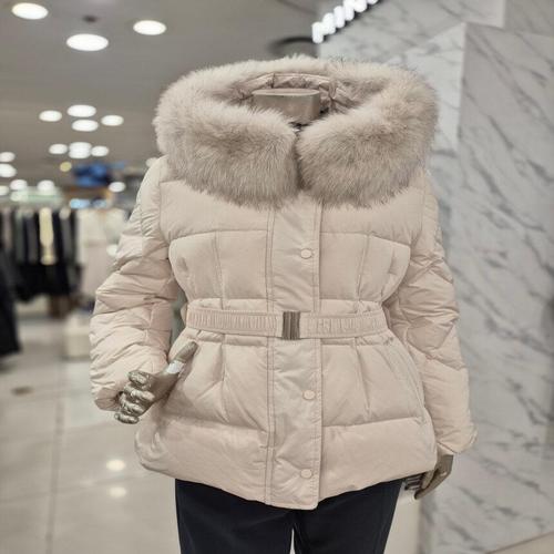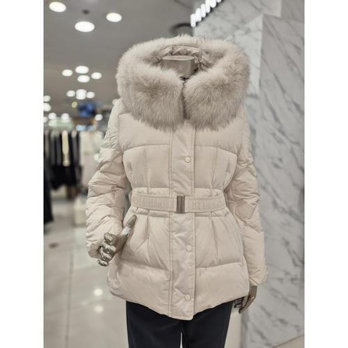 [나인포시즌]엘린 여성 겨울 폭스퍼 100 벨티드 벨트 후드 오리털 덕다운 흰색 숏패딩 명품 패딩 점퍼
