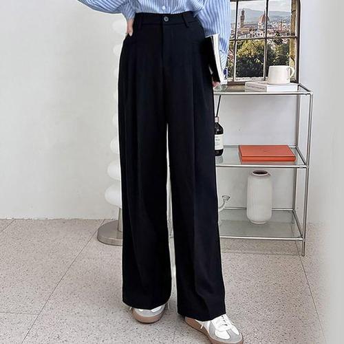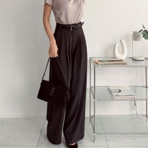 [신상오픈런]여성용 벨트와 함께하는 핀턱 와이드 롱 슬랙스 오피스 패션