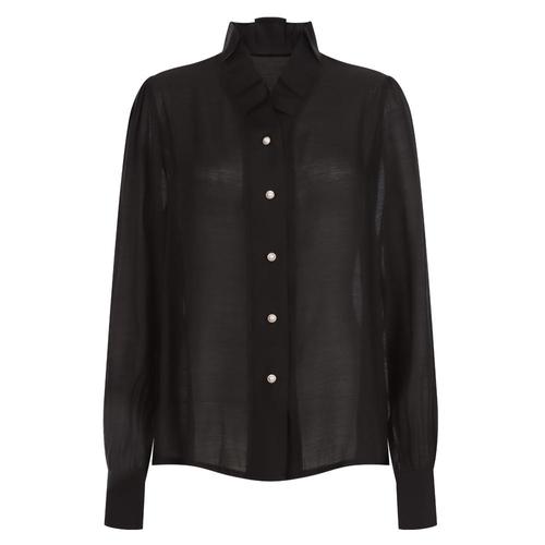 국산 여성 프릴넥 진주버튼 긴팔 텐셀 블라우스 CON-WBL-20621-블랙