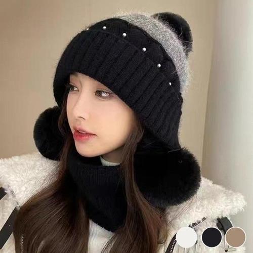 [신상오픈런]|CMC1D95|눈꽃 토끼 강아지 배색 뜨개질 니트 귀마개 끈모자 여자비니_19396611_597559