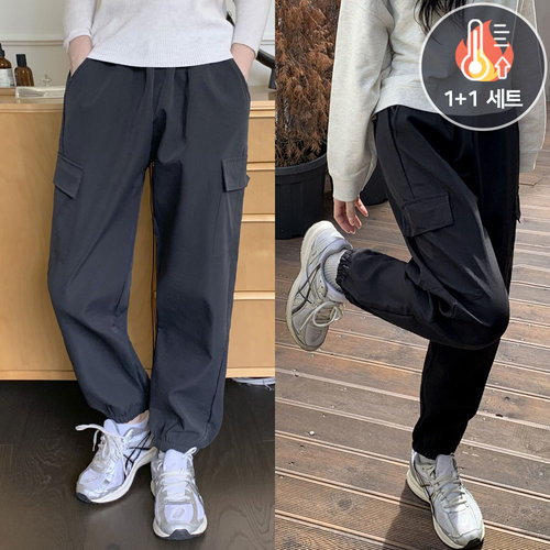 토마토팩토리 1+1 세트 여성 블라토 겨울 기모 따뜻한 아노락 카고 일자 밴딩 바지 팬츠(3color)