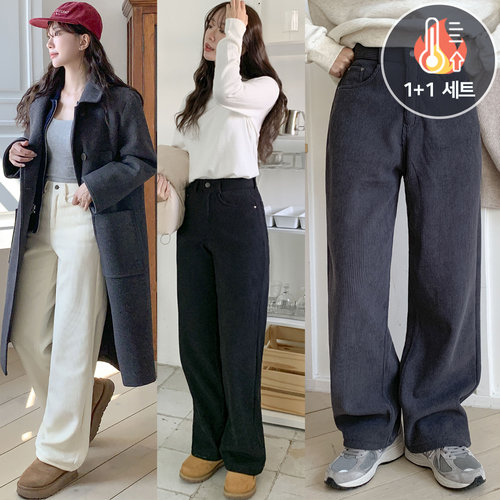 토마토팩토리 1+1 2종세트 여성용 겨울 기모 플로체 스판 코듀로이 일자 와이드 팬츠 (3color)