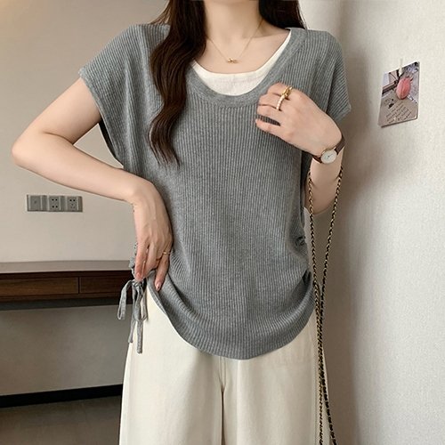 [유니제이] 토미리 레이어드 반팔 티셔츠