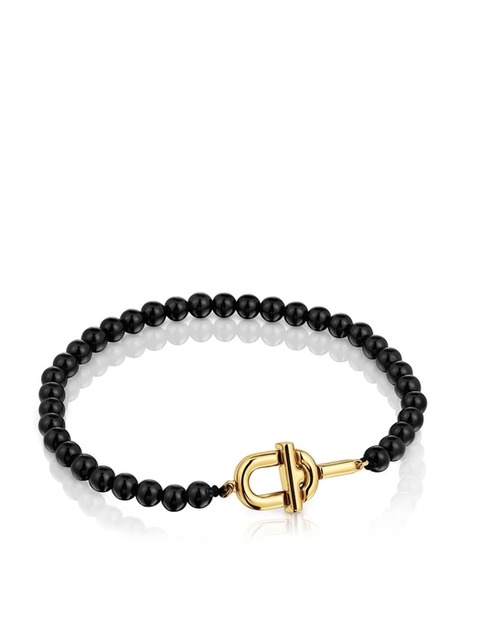 [토스] TOUS 엘라스틱 볼드 베어 브레이슬릿 위드 오닉스 앤 실버 베어 참 / 팔찌 / 311561500