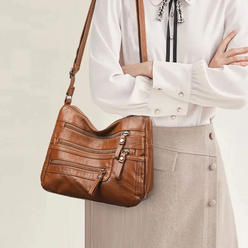 여성용 가죽 크로스바디 백 조절 가능한 어깨끈 지퍼 잠금 여성용 여행 업무 일상 캐주얼 숄더백