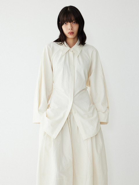 [스튜디오 톰보이] 볼륨 벨티드 롱셔츠_아이보리 9105321120