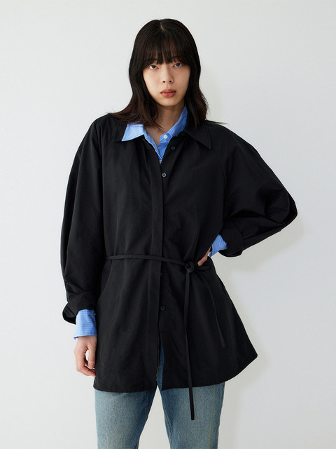 [스튜디오 톰보이] 볼륨 벨티드 롱셔츠_블랙 9105321120