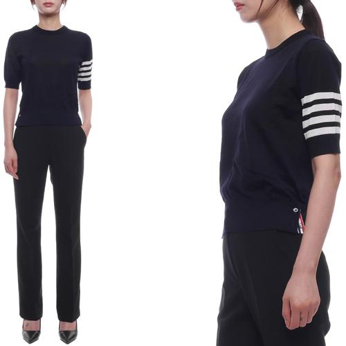 [톰브라운]25FW 여성 사선 스트라이프 울 반팔 니트 (FKA471B Y1014 415 25F)