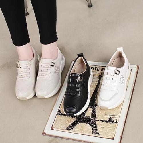 여성 봄가을 키높이 합성 가죽 통굽 운동화