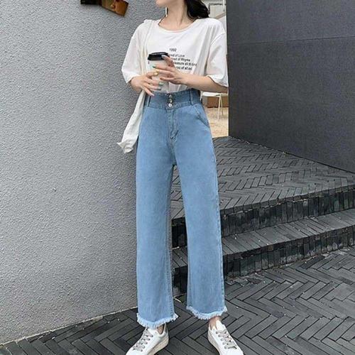 lofei 여성 하이웨이스트 와이드 데님 팬츠 봄 루즈핏 롱 청바지 KZ25