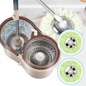 스테인리스 통돌이 회전 청소기 물걸레밀대 바닥청소 밀대걸레 (청소패드 2장)