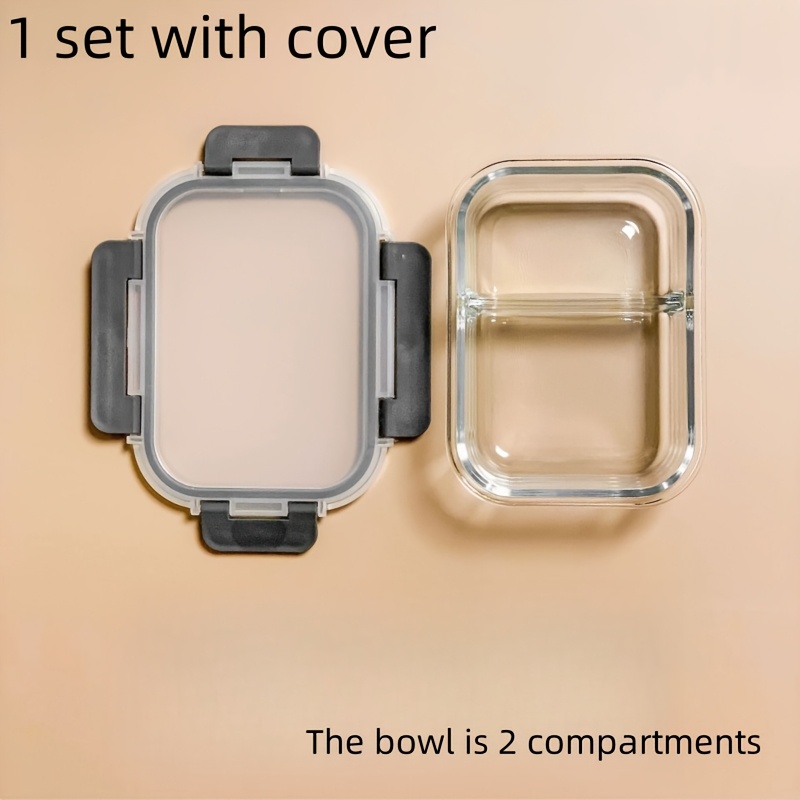 TEMU 1pc 대형 22.88oz 유리 점심 상자 - 2 구획 디자인, 전자레인지 및 냉장고 안전, 야외 사용에 이상적, 완벽한 선물 옵션