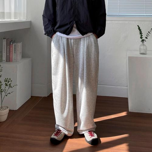[쿼터]남자 더블 핀턱 와이드 트레이닝 팬츠 키작남 커플 통큰 밴딩 바지 숏 롱 2타입