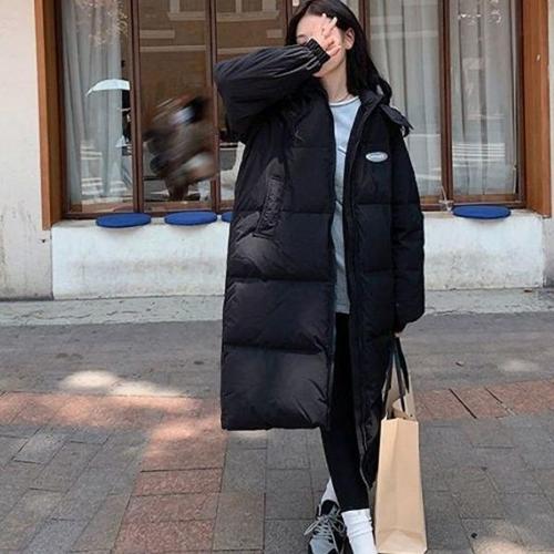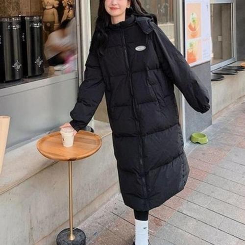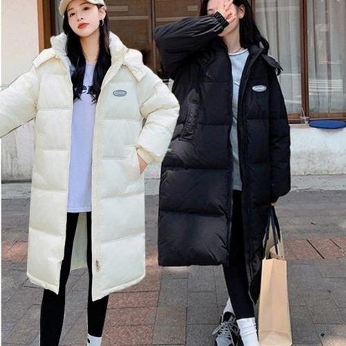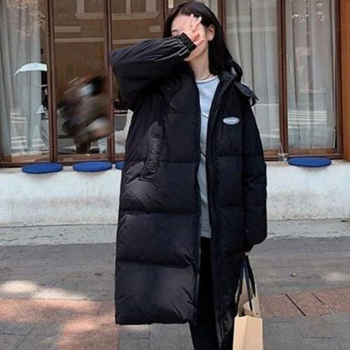 [엄지척]심플 데일리 여성 로고 패치 투웨이 후드 롱패딩_20300025_667501