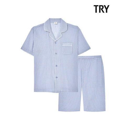 [TRY]남성 반팔 선염 체크 파자마 J14