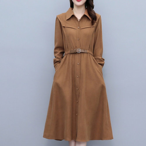 [셀러허브_여성트랜드패션]55 77 벨트 세트 트렌치 카라 루즈핏 롱원피스 하객룩