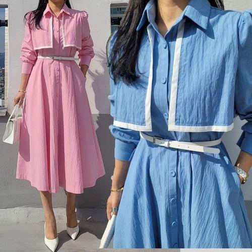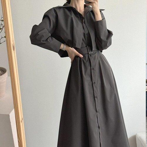[셀러허브_여성트랜드패션]트렌치 벨트 세트 루즈핏 셔츠 롱 플레어 원피스 코디