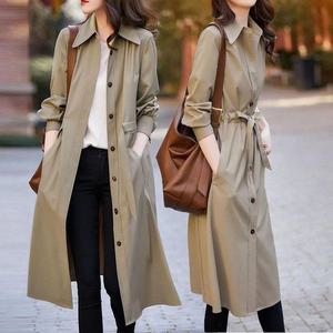여자 트렌치 에이라인 벨티드 롱원피스 코트