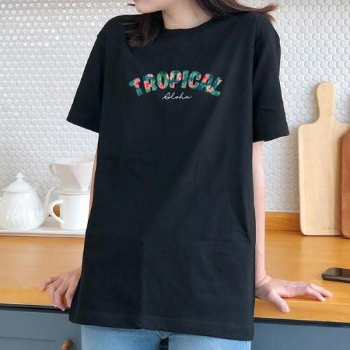 [험블스튜디오][험블스튜디오] 루즈핏 데일리 트로피칼 레터링 라운드넥 반팔티 블랙 (5237724)