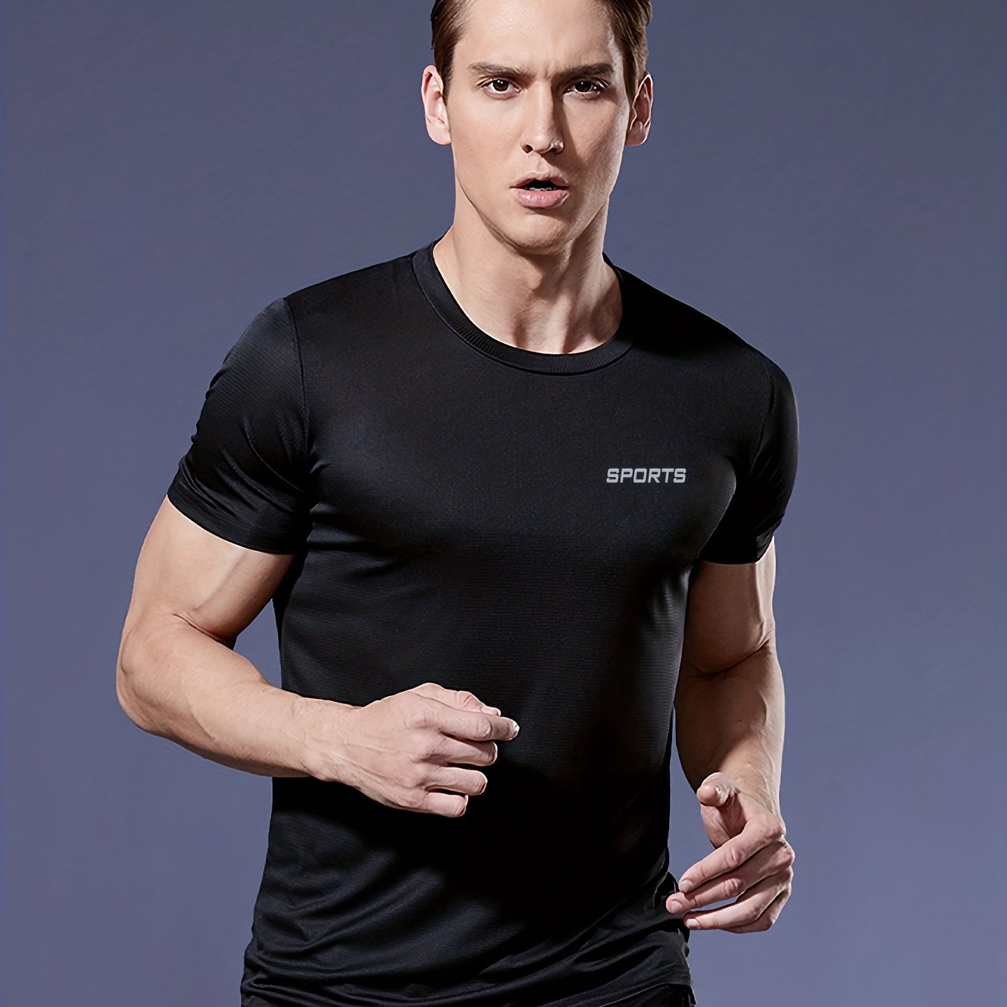 TEMU 남성용 라운드넥 초슬림 티셔츠, 가볍고 통기성 좋은 체육관 운동용 퍼포먼스 러닝 탑|기능성반팔