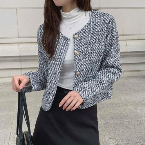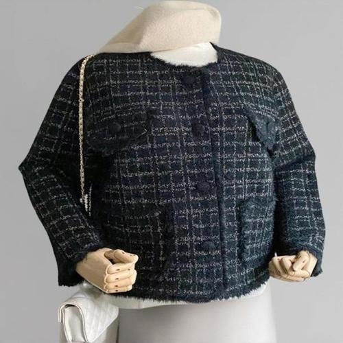 [다잇템_패션]여성 재킷 트위드 카라없는 롱슬리브 금버튼