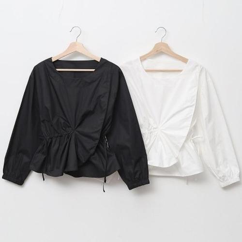 한국 디자인 불규칙 허리끈 셔츠 여성 봄 가을 신상 스트라이프 컬리지 스타일 긴팔 슬림핏 탑