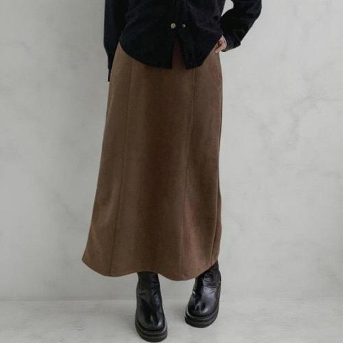 [신상오픈런]여성용 레이온 스웨이드 H라인 트임 롱스커트 캐주얼 스타일