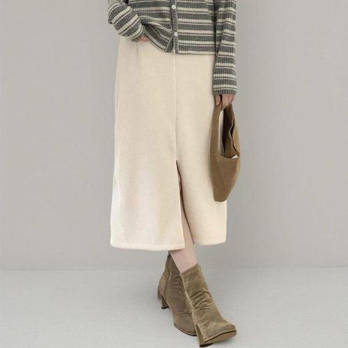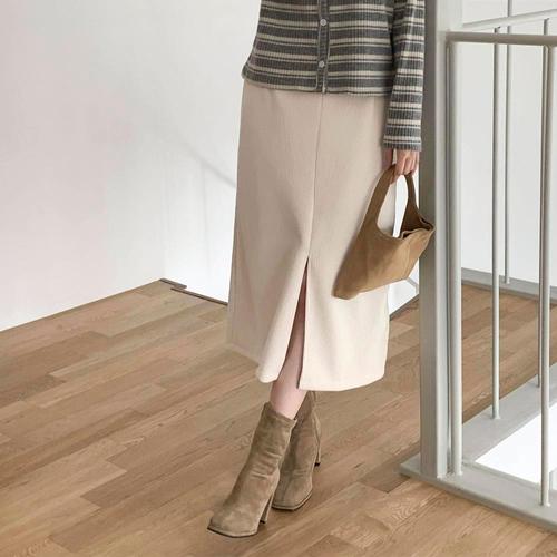 가을 여성 H라인 밴딩 미디 정장 치마 스판 밴딩 옆트임 롱 스커트