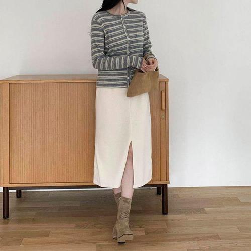 화지나무 오피스룩 H라인 옆트임 밴딩 롱 스커트