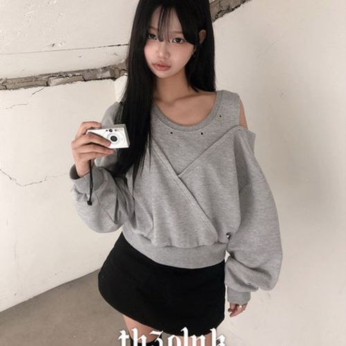 [셀러허브_여성트랜드패션]여자 티셔츠 크롭티 긴팔 오프숄더 어깨트임 3컬러 한쪽 맨투맨