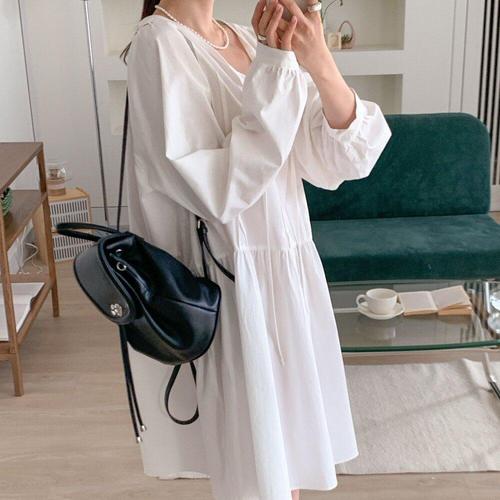 [룽스]여성 밑단 사이드 트임 셔츠 롱 쉬폰원피스 원피스