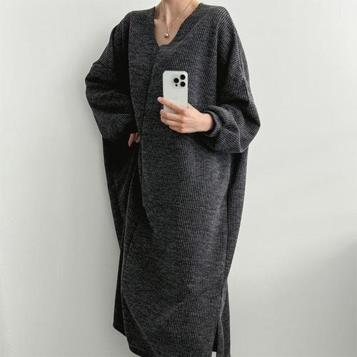 [다잇템]여성 단가라 롱팔부 큰사이즈 트임 V넥 원피스 (45973564)