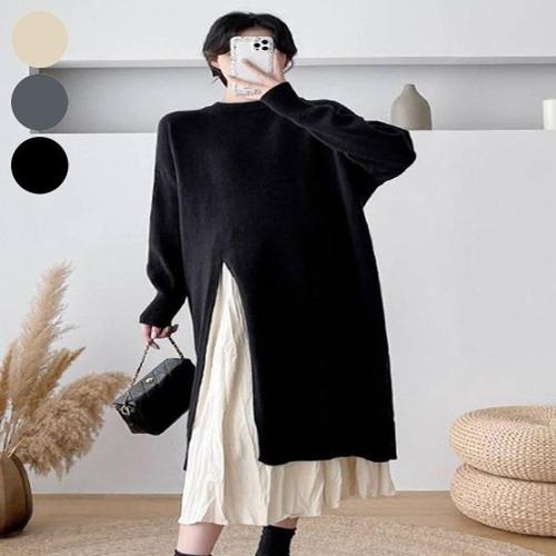 옆트임 브이넥 니트롱원피스 간절기룩 가을니트원피스 니트레이어드원피스