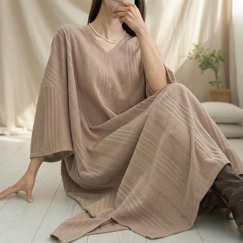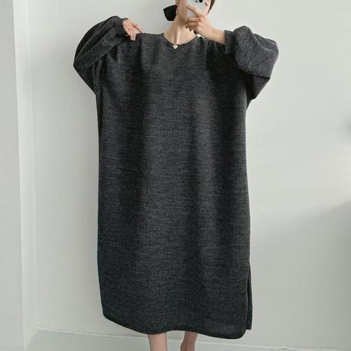 [신상오픈런]여성 심플 빅사이즈 골지 롱원피스 팔뚝트임 홈웨어 (45899404)