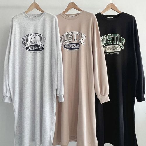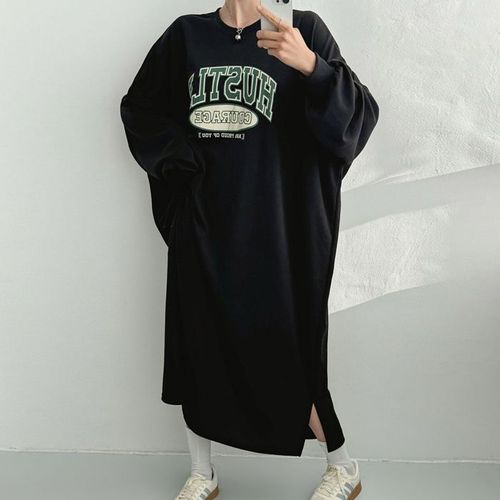 다다구리 Z0420A 여성 겨울 이너 루즈핏 옆트임 라운드넥 니트 셔츠 와이드 롱원피스