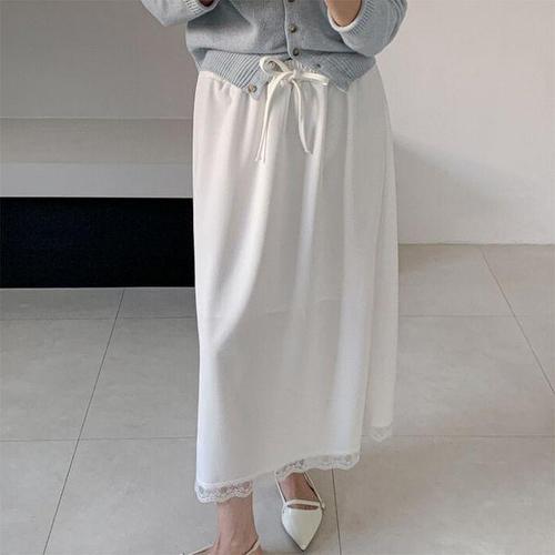 [신상오픈런]여성 레이스 끈 조절 플레어 빅사이즈 트임 롱스커트