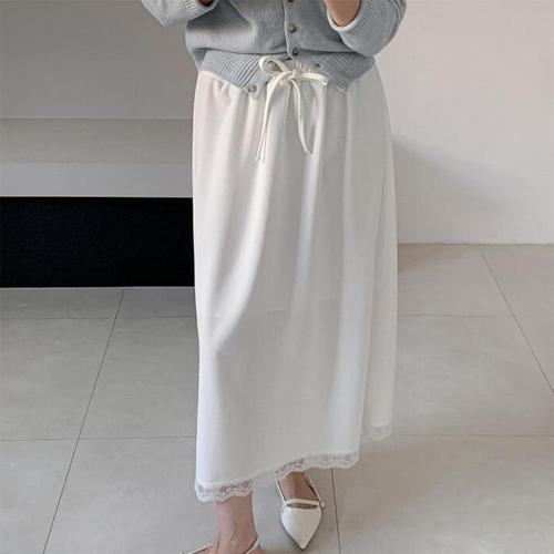[신상오픈런]여성 레이스 끈 조절 플레어 빅사이즈 트임 롱스커트 (45899333)