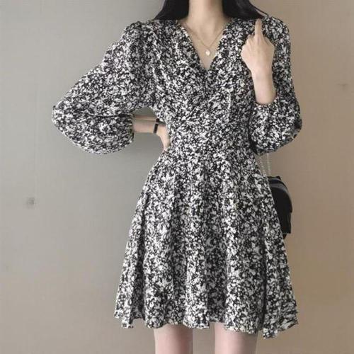 [신상오픈런]여성 플레어 미니 원피스 꽃무늬 랩 디자인 트임 스타일