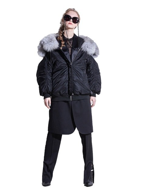 갤러리아 슬림핏폭스퍼후드덕다운벨티드롱패딩