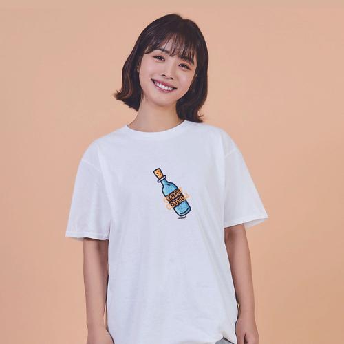 [엠클로]남자 오버핏 보틀 레터링 프린팅 반팔티셔츠 1컬러