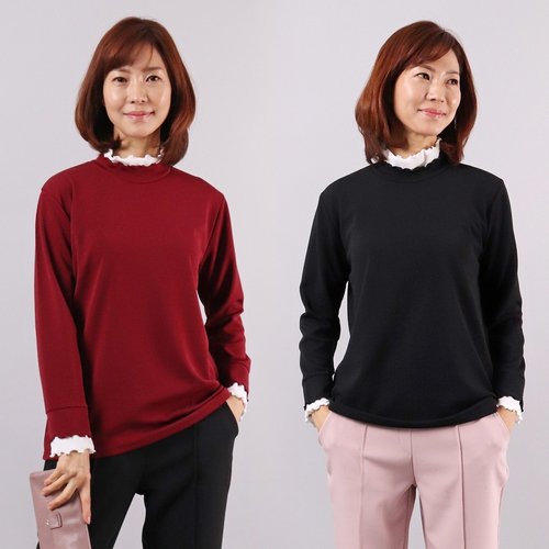 [샵앤] 센스 여성 슬릿카라넥 봄 간절기 레귤러핏 단가라 긴팔 니트 티셔츠 BONG-WKN-2836-블랙
