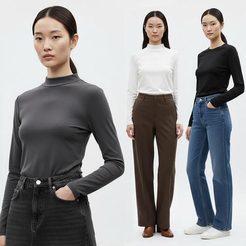 여성 티셔츠 라운드 심플 무지 데일리 긴팔티셔츠