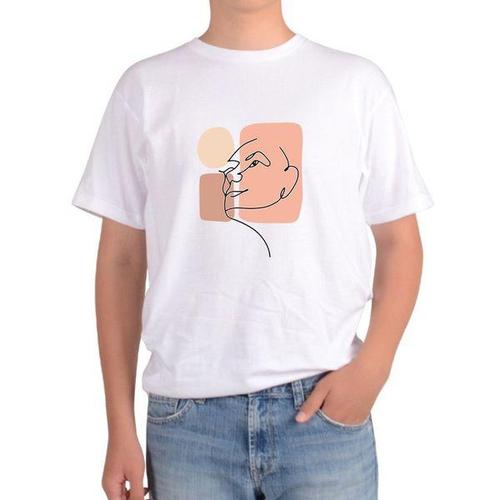 [에이치플러스몰]길단 아시아핏 반팔티 비스듬하게 응시하는 인물화그림 다양한색상 전사이즈