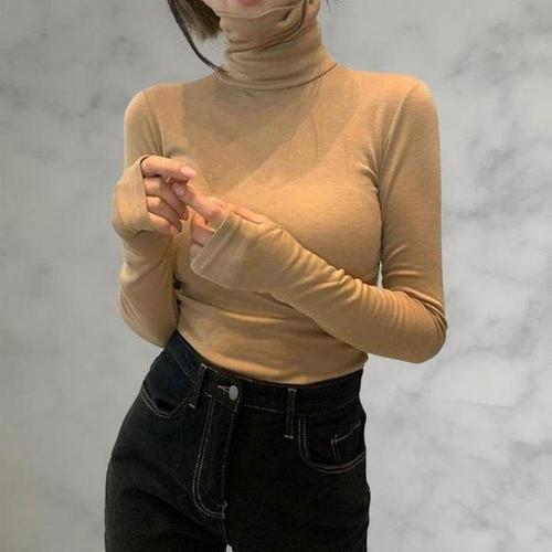 [다잇템]여성 보온 핸드워머 내의 슬림핏 터틀넥 티셔츠