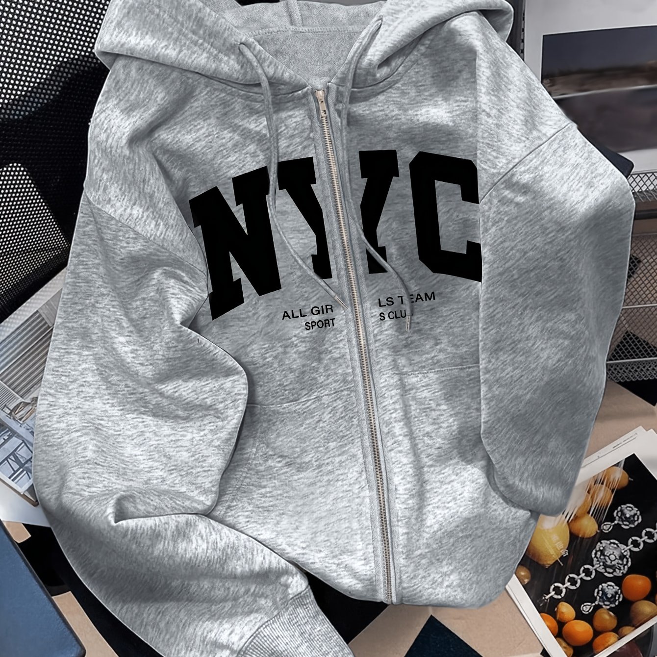 TEMU Quan Quan 활용도 높은 패션 레터 프린트 집업 후드 스웨트셔츠