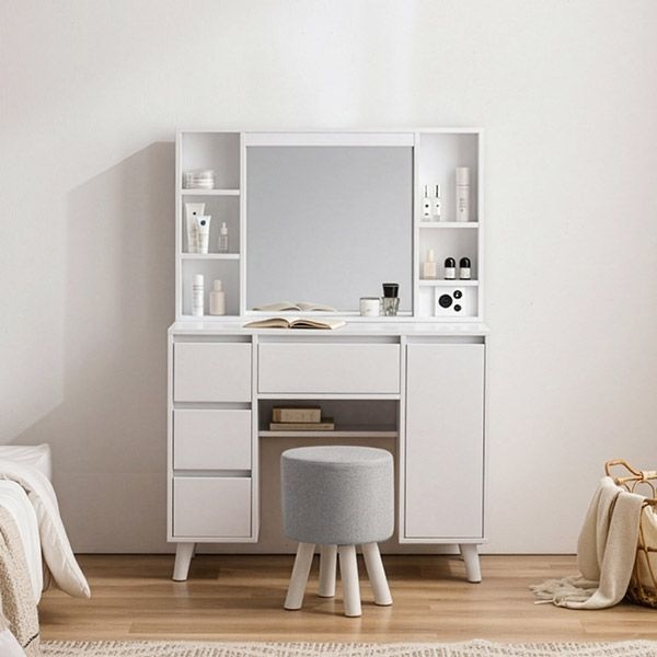 스키니 LED조명 멀티 수납 서랍 화장대 세트 (거울, 스툴포함)
