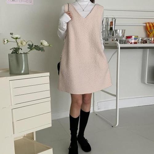 [신상오픈런]|KHO447F|즌더뮤 원피스 여성 파티룩 미디 비스티에 양털 브이넥_18154943_597559