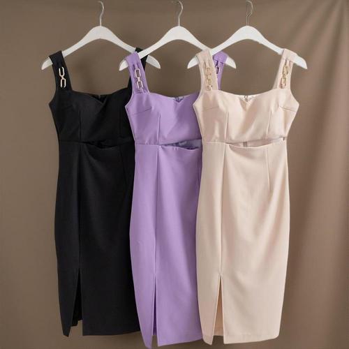 |KSO5721|여성 하트넥 크롭 미디 원피스 하이웨스트 체인 파티룩